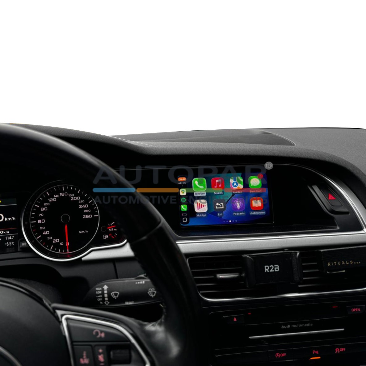 Audi A5 Draadloze Apple Carplay Android Auto werkt enkel op het Audi A5 display als deze niet is voorzien van touchscreen mogelijkheid, ook moet er een MMI radio navi (radio/navi computer in het dashboardkastje) aanwezig zijn in de Audi A5 wil de Apple Carplay/Android Auto functie goed functioneren. Geschikt voor Audi A5 2015-2019 uitgerust met bluetooth.