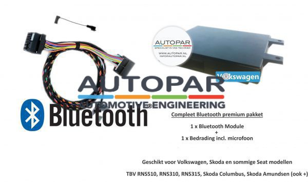 Bestel hier een originele Volkswagen Bluetooth handsfree uitbreiding. Veel Volkswagens zijn af fabriek geleverd zonder enige vorm van handsfreeset/bluetooth mogelijkheden. Deze bluetooth module set, inclusief kabelboom en microfoon, zorgt ervoor dat u handsfree kunt bellen via de luidsprekers van de auto en de meegeleverde, originele microfoon die professioneel en onzichtbaar kan worden ingebouwd in uw auto. Ook kunt u uw eigen muziek van uw telefoon met bluetooth afspelen via de luidsprekers van uw auto, mits uw auto daarvoor geschikt is. Omdat dit een origineel VW product is, is de kwaliteit zoals u verwacht van VW.
