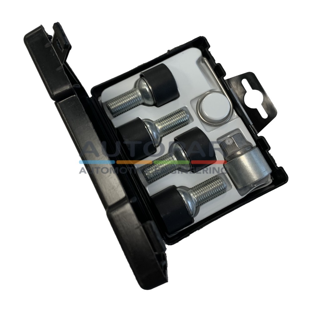 Volkswagen Slotboutenset, voorkom diefstal van uw velgen onder uw Volkswagen, Skoda, Seat of Audi. Deze anti-diefstal slotbouten op uw wielen kan diefstal voorkomen. Voor elke velg 1 slotbout en 3 normale bevestigingsbouten. Op deze manier blijven uw velgen netjes onder uw auto en kan diefstal worden voorkomen. Origineel VAG.