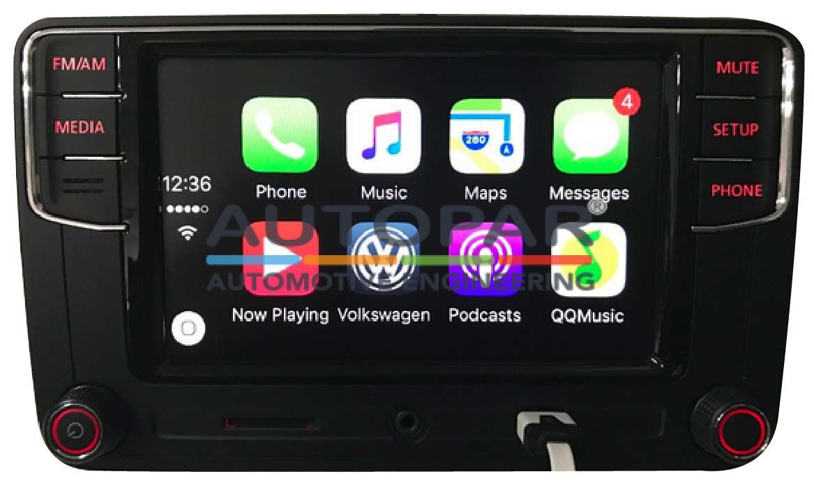 Wilt u graag in uw Volkswagen Golf / E-Golf / Sportsvan Apple Carplay en Android Auto ingebouwd hebben? Autopar biedt hier nu de oplossing voor. Wij integreren een Autopar Apple Carplay en Android Auto module die onzichtbaar is weggewerkt en door ons professioneel word geactiveerd. U kunt op uw huidige VW Golf display genieten van de app connect functie (Apple Carplay & Android Auto). Dit alles geheel draadloos. Geschikt voor Golf 7 / 7.5 uitgerust met originele bluetooth. Originele VW Golf functies zoals parkeersensoren en achteruitrijcamera blijven uiteraard behouden. Afbeeldingen wijken uiteraard af van uw display, word altijd op het origineel display getoond!